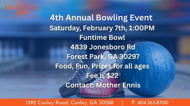 NMLBC 4th Annual Bowling event will be Saturday, February 7, 2026 at 1:00 pm. Location Funtime Bowl, 4839 Jonesboro Rd., Forest Park, GA 30257